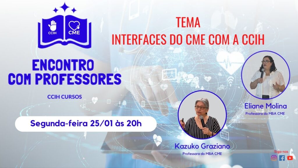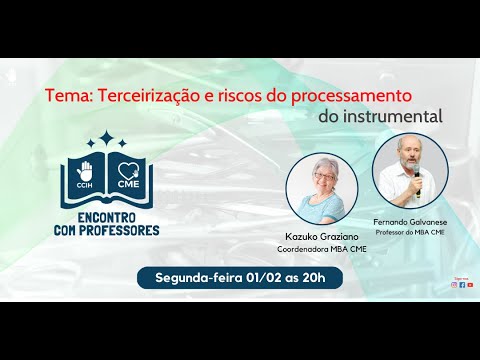 A terceirização apoia ou ameaça a atuação do CME? Como aplicar os princípios da epidemiologia e estatísticas para compreender os riscos envolvidos e o monitoramento da ewficácia do processamento dos produtos para saúde. Os professores Fernando Galvanese e Kazuko Graziano vão esclarecer essas e outras dúvidas neste encontro com professores